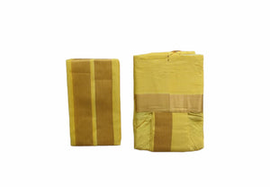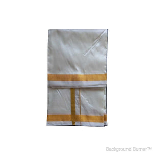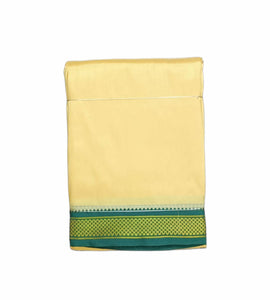 EXD665 Men's Traditional Art Silk Cream Color Dothi With Gold Border  9X5 (or) 4.15 Mtr Dhoti with 2.30 Mtr Angavastram