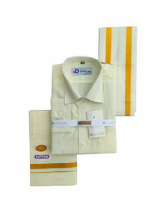 EXD682 Exclusive Dhoties Men's Pure Cotton Full & Half  Sleeve Cream Shirt With Dhoti And Angavastram/Towel