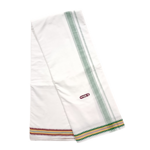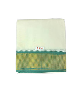 EXD264 Men's Traditional Pure Cotton Bleached White Dhoti With Gold & Silver Border Size 8 Mulam / 3.60 Mtrs Unstitched Dhoti Double