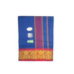 EXD738 Men's Traditional Cotton Colour Dhoti With Gold & Silver Border Size 9X5 (or) 4.15 Mtr Dhoti with 2.30 Mtr Angavastram