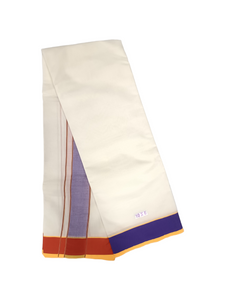 EXD826-Exclusive Dhoti Mens Pure Cotton Dhoti with 2" Design Munthi And 3" Polyster Border Size 9x5(4.1 Mtrs Dhoti 2.5 Mtrs Angavastram)
