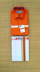 EXD181 Men's Combo Matching Art silk shirt Half Sleeve and 2 Mtrs cotton Dhoti with Velcro and pocket / Orange