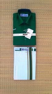 EXD181 Men's Combo Matching Art silk shirt Half Sleeve and 2 Mtrs cotton Dhoti with Velcro and pocket / Green