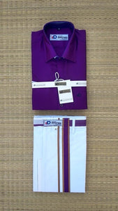 EXD181 Men's Combo Matching Art silk shirt Half Sleeve and 2 Mtrs cotton Dhoti with Velcro and pocket / Violet