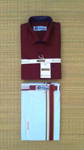 EXD181 Men's Combo Matching Art silk shirt Half Sleeve and 2 Mtrs cotton Dhoti with Velcro and pocket / Maroon