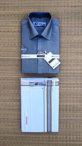 EXD181 Men's Combo Matching Art silk shirt Half Sleeve and 2 Mtrs cotton Dhoti with Velcro and pocket / Silver Gray