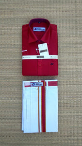 EXD181 Men's Combo Matching Art silk shirt Half Sleeve and 2 Mtrs cotton Dhoti with Velcro and pocket / Red